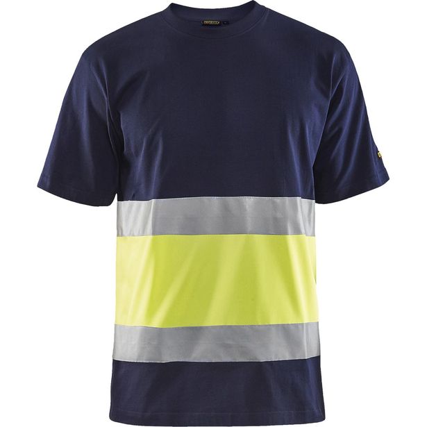 T-paita Blåkläder 3387 Highvis, mariininsininen/huomiokeltainen