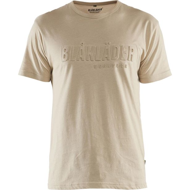 Tyylikäs puuvillainen t-paita 3 D printillä edessä, jossa lukee 'Blåkläder'. T-paita sopii niin työhön kuin vapaa-ajalle ja osoittaa, että käyttäjällä on erittäin hyvä maku työvaatteiden suhteen.