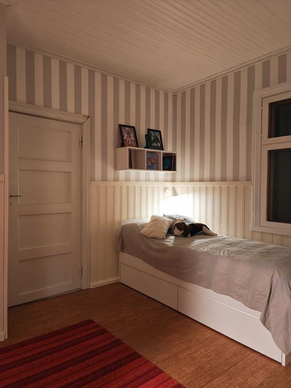 Perushyvä tapetti★★★★★★★★★★Suosittelen tuotettaOikein hyvä tapetti ja kivan näköinenkin! 😊 Sopi pojan huoneeseen kuin nenä päähän. Tästä tosin aavistuksen näkyy läpi, eli jos alla on sattumoisin esim. 5-vuotiaan tussipiirustuksia, ne paistavat raitojen läpi. 😅Oliko arvostelu hyödyllinen?Oliko arvostelu hyödyllinen?