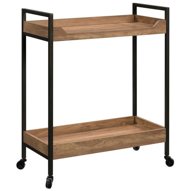 Tarjoiluvaunun runko on metallia ja vaunuosa on melamiinipinnoitettua kalustelevyä.