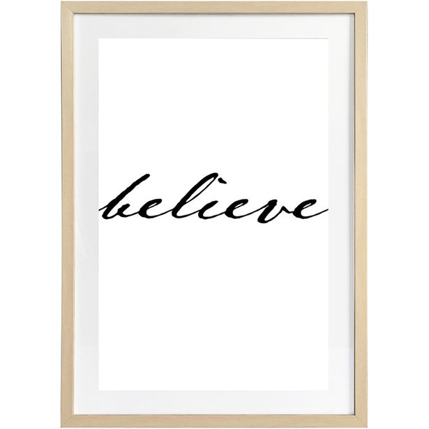 AmandaB Collection Deco Believe on 50x70 cm kokoinen taulu laadukkaassa vaalean puun värisessä kehyksessä. Yhdistele muiden saman sarjan tuotteiden kanssa taulukollaasiksi.