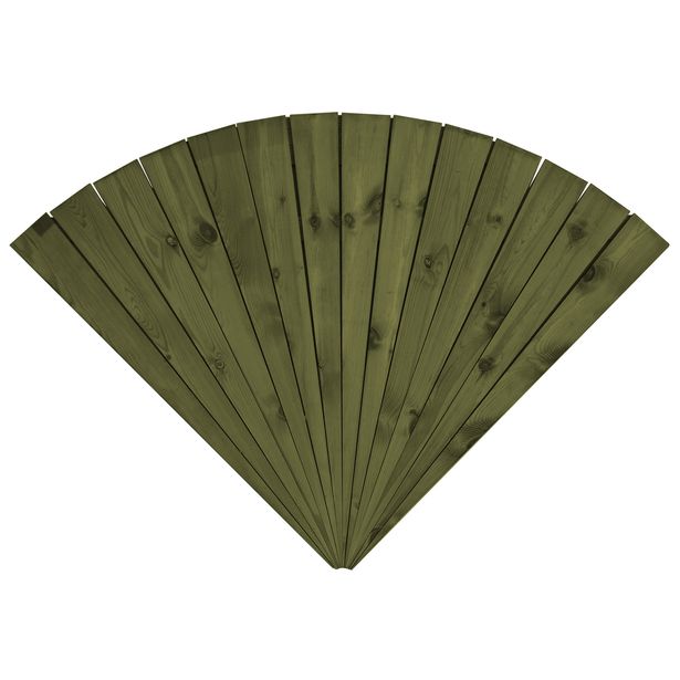 Tammiston Puun viuhkalaatoilla toteutat terassin kaarevat kulmat ja erkkerit. Laatat on valmistettu kotimaisesta männystä ja ne kestävät ulkokäytössä vuosikausia. Kestopuun sävy on vihreä.