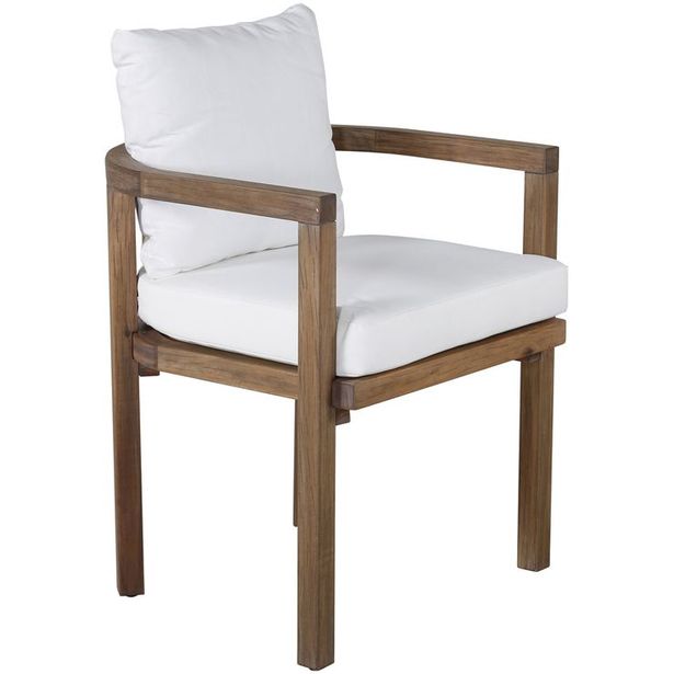 Unelmatuoli kaikille modernin sisustuksen ystäville, jotka haluavat nauttia ylellisestä lounge-tunnelmasta! Istu mukavasti ja tyylikkäästi Erica-tuolin pehmeillä valkoisilla tyynyillä. Huolellinen kokonaismuotoilu, modernit muodot ja tyylikäs, ruskeasta akaasiapuusta valmistettu runko tekevät siitä terassisi keskipisteen!