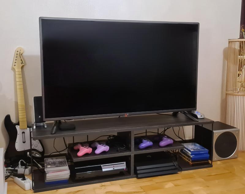 120 cm leveä runko tarjoaa reilusti tilaa televisiolle, ja useat avohyllyt antavat paikan viihde-elektroniikalle, kirjoille tai sisustusesineille.