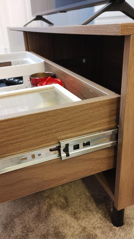 Kehno MDF kyhäelmä★★★★★★★★★★En suosittele tuotettaTLDR; Ylihintaista MDF-roskaa, ei puuta. Säilytystilaa tarvitsemattomalle kiviseinään kiinnittäjälle ehkä ok. Ihan nätti kasattuna. Väri livenä harmaampi kuin näytölläni tuotekuvissa. Mukana kiinnitystarvikkeet vain kiviseinään. Takaseinä on noin 8,5mm muita paneeleita sisempänä, eli koolauksiin ruuvatessa täytyy takaseinän taakse lisätä jotain fyllinkiä. Sisäpuolellekin kenties rimaa, en luottaisi televisiotani pelkän 15mm mdf-levyn varaan. ELLEI koolaukset sitten satu juuri oikeisiin, epätasaisin välein oleviin kohtiin joissa alkuperäiset kiinnikkeet ovat. Tällöin voinee käyttää ainakin osaa mukana tulevasta kiinnitysraudasta. Luovutimme, ja ostimme 4kpl kalustejalkoja. Olisi pitänyt ostaa viisi, sillä mööpeli notkahtaa banaanille kun pöly laskeutuu päälle. Etualanurkat piti tässä tapauksessa vahvistaa kulmaraudoin (kuva), jottei liitokset murru kun tasolle laskee kahvimukin tai vaikka kynttilän, vaan kuormitus välittyy suoremmin jalalle. Sitten nurinaa säilytystilasta: Tämän 252 litran tilavuuksisen huonekalusteen kahden vetolaatikon yhteenlaskettu tilavuus on yläkanttiinkin laskettuna 99 litraa. Siis 39% koko hökötyksestä. Hukkatilaa laatikoiden alla 6cm (toinen kuva) korkeudelta, sekä takana 10cm syvyydeltä, kaikkiaan siis 75,7 litraa eli 30% koko mööpelistä. Loppu 31% on mdf-mössöä, valmiiksi naarmuuntunutta viilua joka ohjevihkosen mukaan on normaalia eikä reklaamoitavissa, kiinalaisia liukukiskoja, vinoja levykiinnikkeitä sun muuta mitä käsistään kätevä puutyökalujen omistaja ei kotiinsa missään tapauksessa tietoisesti osta. Kasaus on ihan inhimillinen operaatio, reijät, urat ym. kohdillaan. Muutama oma ruuvi lisäksi pitämään laatikoita paikallaan, niin saattaahan tuo vaikka pysyä kasassakin.Oliko arvostelu hyödyllinen?Oliko arvostelu hyödyllinen?