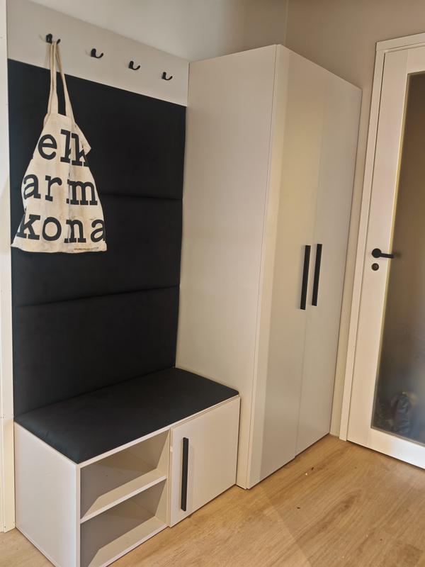 - Vaatekaappi voidaan sijoittaa kenkäkaapin oikealle tai vasemmalle puolelle – ne ovat erilliset osat, joita voi siirtää vapaasti