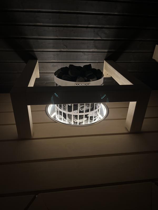 Harvian korkealaatuinen valaistu upotuskaulus tuo tunnelmaa ja valoa saunahetkiin. Upotuskauluksen avulla saat upotettua kiukaan tyylikkäästi alalauteeseen. Upotuskaulus toimii myös lämpösäteilysuojana, jonka ansiosta upotusaukko tehdään vain hieman kiuasta suuremmaksi ja lopputulos näyttää yhtenäiseltä.