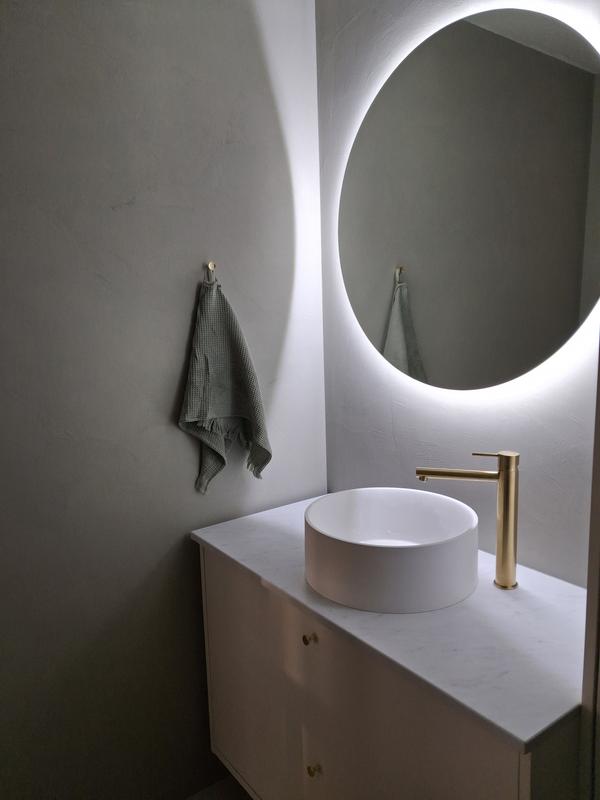 Hei, palaako peilin hipaisupainikkeissa valo, kun peilin varsinainen Led-valo on pois päältä? Jos palaa, niin minkä värinen valo?