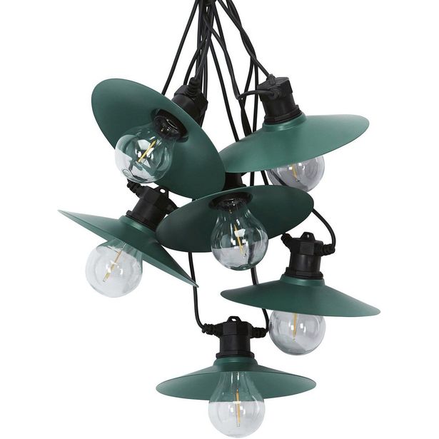PR Homen tyylikäs kuusiosainen Donna-valosarja, jolla voi koristaa sekä sisätiloja että terassia tai puutarhaa. Valosarjassa on kuusi kiinteää LED-lamppua lämpimän valkoisella valolla sekä petroolin väriset, sileät metallivarjostimet.