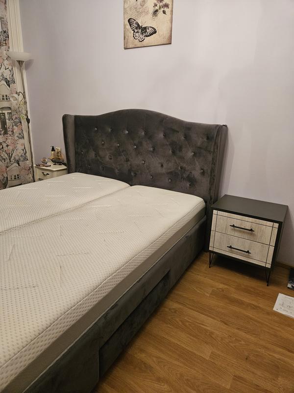 Linento Furniture Night -yöpöytä on tyylikäs ja käytännöllinen lisä makuuhuoneeseesi. Yöpöytä on valmistettu 100% melamiinipinnoitetusta huonekalulevystä, jonka paksuus on 18 mm. Yöpöydässä on metallijalat ja CNC-tekniikalla valmistetut reliefiovet. Pöydässä on kaksi tilavaa vetolaatikkoa, joissa on teleskooppikiskot sujuvaa avautumista varten. Yöpöydän mitat ovat 50 cm leveä, 55 cm korkea ja 40 cm syvä, ja jalat nostavat sen 15 cm irti lattiasta.